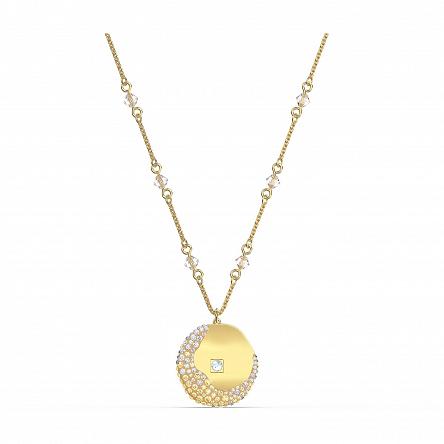 Głównym elementem naszyjnika jest moneta wysadzana błyszczącymi kryształami.