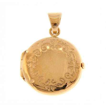 Precyzyjnie wykonane złote puzderko próby 585 z wygrawerowanym florystycznym wzorem (grawer może różnić się od przedstawionego na fotografii). Do sekretnika mamy możliwość włożenia dwóch fotografii bądź drobnej pamiątki, więc zawieszka doskonale sprawdzi się jako prezent dla osoby bliskiej naszemu sercu.