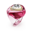 Różowa obrączka w kształcie serca harmonijnie łączy się z przezroczystym kryształem o tym samym kształcie, otoczonym połyskującym kryształem pavé w pozłacanej oprawie. Noś go, gdy tylko masz ochotę dodać blasku swojemu lookowi, lub wyraź swoją kreatywność, łącząc go z innymi pierścionkami z kolekcji Dulcis.