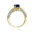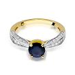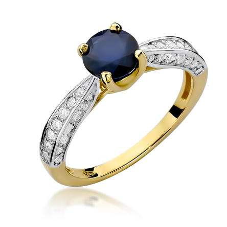 Luksusowy pierścionek wykonany z najwyższej jakości lśniącego żółtego złota próby 585, ozdobiony brylantami o łącznej masie 0,47 ct oraz szafirem o masie 1,00 ct! Diamenty w szlifie brylantowym o bardzo dobrej czystości i bieli Si2/H tworzą harmonijne połączenie z polerowanym złotem oraz podkreślają niezwykły blask i wielkość szafiru, nadając kobiecej dłoni strojnego, dynastycznego wyglądu!
