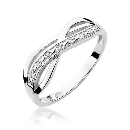 O chwytliwym designu pierścionka przesądza przykuwająca uwagę ciekawa konstrukcja szyny - typu obrączka, dzięki czemu brylanty w opływowy sposób ozdabiają palec kobiety.