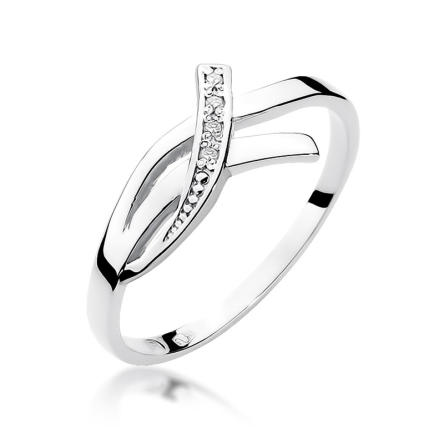 Subtelny pierścionek wykonany z białego złota próby 585, ozdobiony brylantami o łącznej masie 0,02 ct, czystości SI2 oraz barwie H.