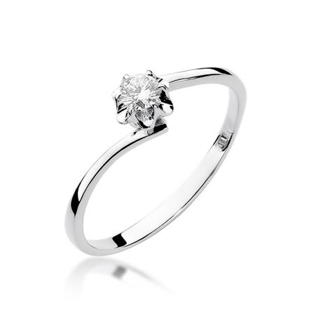 Pierścionek wykonany został z najwyższej jakości białego złota próby 585 oraz jednego brylantu o masie 0,08 ct (czystość SI2, barwa H) usytuowanego na finezyjnej oprawie przypominającej kwiat, dzięki czemu subtelny wzór pierścionka w zupełności podkreśla jego kunsztowną konstrukcję.