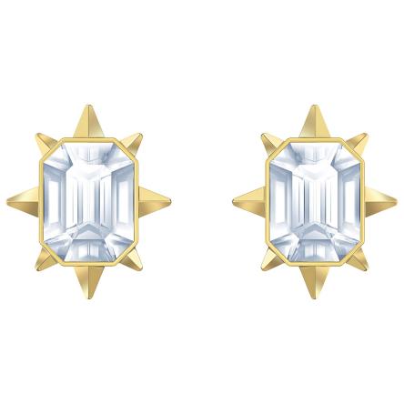 Delikatne kolczyki Swarovski z kolekcji Tarot. Kolczyki pokryte zostały żółtym złotem oraz ozdobione białym kryształem.
