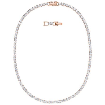 Efektowny i kobiecy naszyjnik Tennis marki Swarovski wykonany z metalu z powłoką PVD w odcieniu różowego złota wypełnionego białymi kryształami osadzonymi blisko siebie to kwintesencja eleganckiej biżuterii. Stylowy, klasyczny i uniwersalny naszyjnik, która dopełni każdą stylizację. Model o długości 38 cm dodatkowo posiada przedłużkę 2,5cm. Kolekcja Tennis to produkty pełne finezji, stylu i piękna.