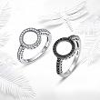 Pierścionek ozdobiony został czarnymi cyrkoniami.