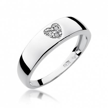 Romantyczny pierścionek wykonany z najwyższej jakości lśniącego blaskiem białego złota próby 585, ozdobiony brylantem o masie 0,03 ct (czystość SI2, barwa H) - umiejscowionym w samym środku serca.