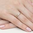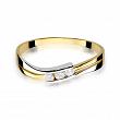 Reprezentatywny pierścionek wykonany z najwyższej jakości lśniącego dwukolorowego złota próby 585, udekorowanego nieskazitelnie mieniącymi się kamieniami szlachetnymi w szlifie brylantowym o łącznej masie 0,12 ct (czystość SI2, barwa H).