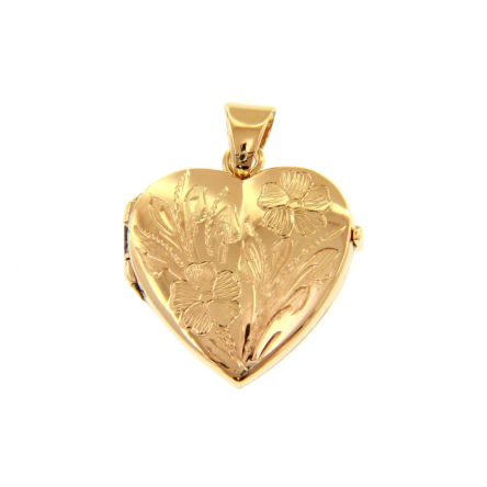 Puzderko z żółtego złota serce z grawerowanymi kwiatami