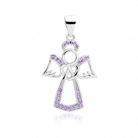 Zawieszka wykonana ze srebra próby 925 w kształcie aniołka ozdobionego cyrkoniami w kolorze fioletu.