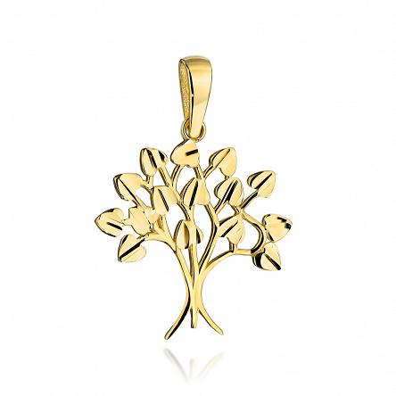 Precyzyjnie wykonana złota zawieszka próby 585 z drzewkiem szczęścia.