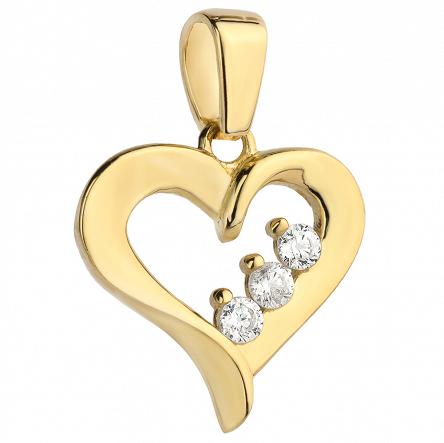 Precyzyjnie wykonana złota zawieszka próby 585 w kształcie serduszka ozdobionego trzema kamieniami. Doskonała jako ozdoba modnej kreacji, świetnie sprawdzi się jako prezent urodzinowy, imieninowy, pamiątka ważnej uroczystości.