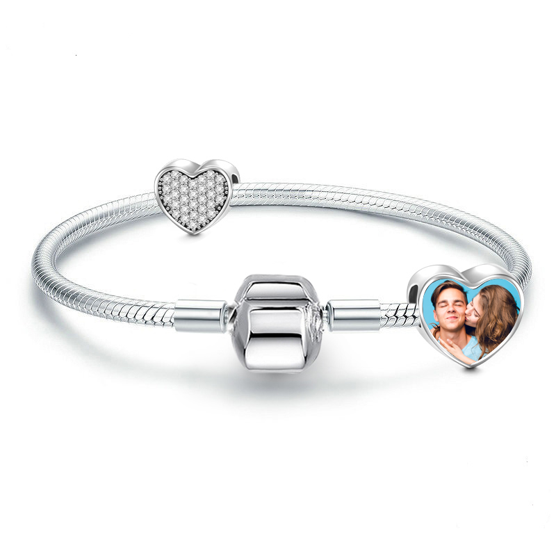- Charms Zawieszka ze zdjęciem Serce Białe cyrkonie